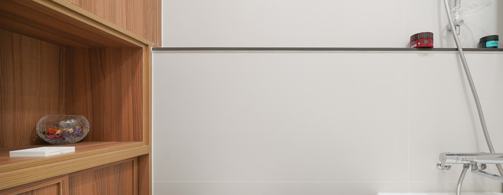 主廁亦因先天喉管問題,難以更改整個浴室嘅大細!屋主認為可以增加櫃身亦無損大雅。