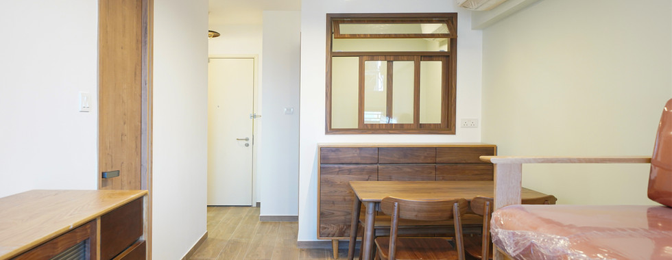 對於呢一種圖側黎講,空間規劃上最理想嘅做法當然係兩房一廳。係考量上,好多屋主都徘徊係〝空間感〞與〝客廳光線〞之間。為左平衡兩者之間,設計師將小睡房安排係客廳嘅一個角落,其空間足以擺放一張單人床及書枱架!而另一方面,客廳多左一棟牆身,視覺上的而且確會變得壓迫,但我地可以係新起嘅牆身上安排一個室內窗嘅設計,令光線可以輕易穿透客廳至小睡房,可以保持空氣流動,隨時望到小朋友嘅行蹤,亦可以增加同小朋友嘅互動嘅機會!
